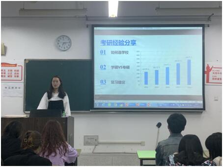 党支部副书记胡忠峰作了《百年辉煌-庆祝中国共产党成立100周年》专题党课;考取南京林业大学研究生叶楠作了考研报考、复习、面试经验分享;南工大联培研究生、考取沛县交通局公务员刘延慧讲述了研究生学习期间的收获与体会;考取河海大学研究生陈紫薇介绍了英语四、六级学习方法技巧;考取浙江海洋大学研究生鞠拓畅谈了参加科技创新和社会实践活动的体会;考取名校优生选调生、省优秀毕业生安少珂分享了创建“周恩来”班的工作经验。