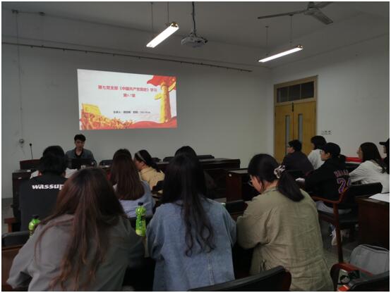 首先,党支部副书记胡忠峰以PPT和视频相结合的方式向同学们介绍了党史的第五至七章内容。党史第五至七章分别为中华人民共和国的成立和新民主主义到社会主义的过渡、探索中国自己的建设社会主义的道路和十年“文化大革命”的内乱。在以毛泽东为核心的党的第一代中央领导集体的领导下,新民主主义革命取得了伟大胜利,并建立了新中国。1956年底,社会主义改造的基本完成标志着我国社会主义基本制度的确立。在十年探索时期,共产党人明白了我们要建设符合中国国情的社会主义道路。最后,全体成员们观看了《百炼成钢-中国共产党的100年》微视频。