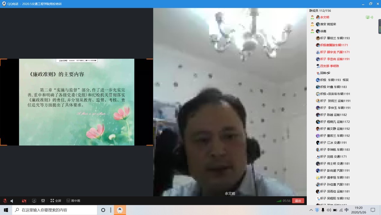 5月26日晚19:00,必一运动bsport体育2020年第一期党课第二讲在线上举行,党委余文明副书记作了《践行廉政准则 坚守四条底线 做合格党员》专题讲座,公司入党积极分子及转正预备党员参加了学习。