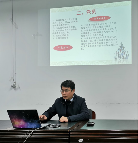 姚旭荣老师紧紧围绕对《中国共产党章程》的学习,讲述了党章的特点、作用、学习党章的意义,讲述了习近平新时代中国特色社会主义思想的核心内涵,并对党章的各个章节的内容进行了讲解。
