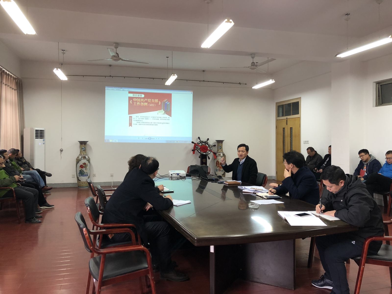 2018年12月5日,公司党委书记徐才千书记为全体教职工作《中国共产党支部工作条例(试行)》辅导报告,从组织设置、基本任务、工作机制、组织生活、党支部委员会建设、领导和保障、附则共八章37条对《条例》进行逐条解读,明确了党支部的职责和工作原则等内容。