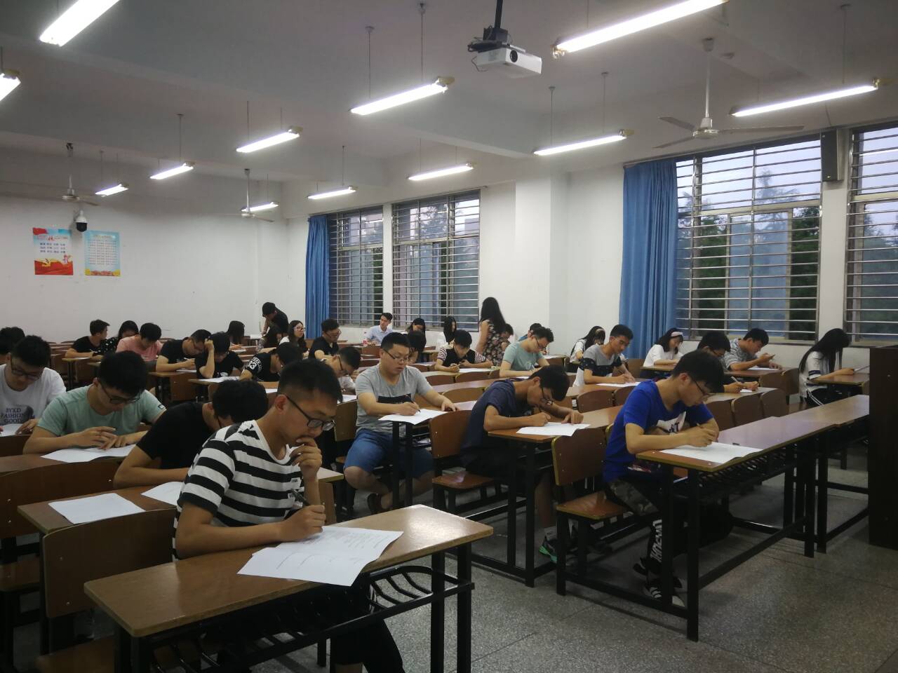 在考试之前,监考员强调了考场纪律,宣读了考场规则及答题要求之后,所有同学开始聚精会神地答题。考试过程中,监考员认真监考,考场纪律良好。积极分子们认真思考、奋笔疾书,一个小时后,所有同学有序上交试卷,本次党课结业考试圆满结束。