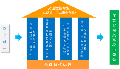 本专业紧绕高层次应用型人才培养,不断加强平台建设,相继获批国家级车辆与交通虚拟仿真实验教学中心等一批省级以上平台,并获批江苏省交通运输工程重点学科,上述成果中四项为江苏省同类高校唯一。