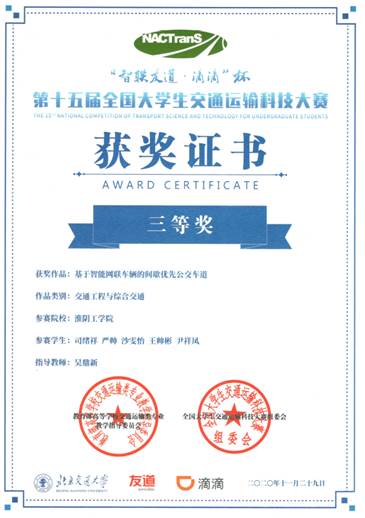 近三年来,毕业生就业率一直稳居98%以上,其中国有大中型企业及行政事业单位就业占43.8%,硕士研究生录取率35.5%。员工创新创业能力大幅提升,获得“创青春”全国大赛金奖1项,“挑战杯”国赛三等奖1项,全国交通类科技大赛8项,省交通科技大赛15项,省数学建模大赛8项,省英语、人文社科竞赛等12项;获省优秀毕业设计3项;省先进班集体1项。
